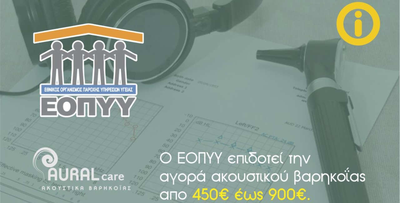 Ο ΕΟΠΥΥ επιδοτεί την αγορά ακουστικού βαρηκοΐας απο 450€ έως 900€. Η επιδότηση μπορεί να ισχύσει ακόμα και για δύο ακουστικά βαρηκοΐας εφόσον η βαρηκοΐα είναι μεγαλύτερη ενός συγκεκριμένου ορίου.